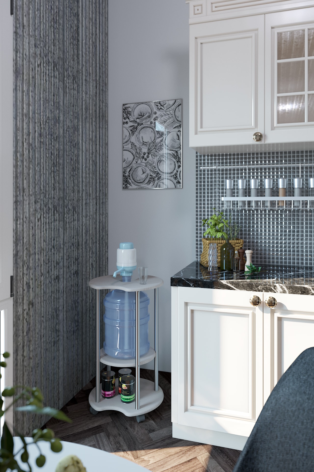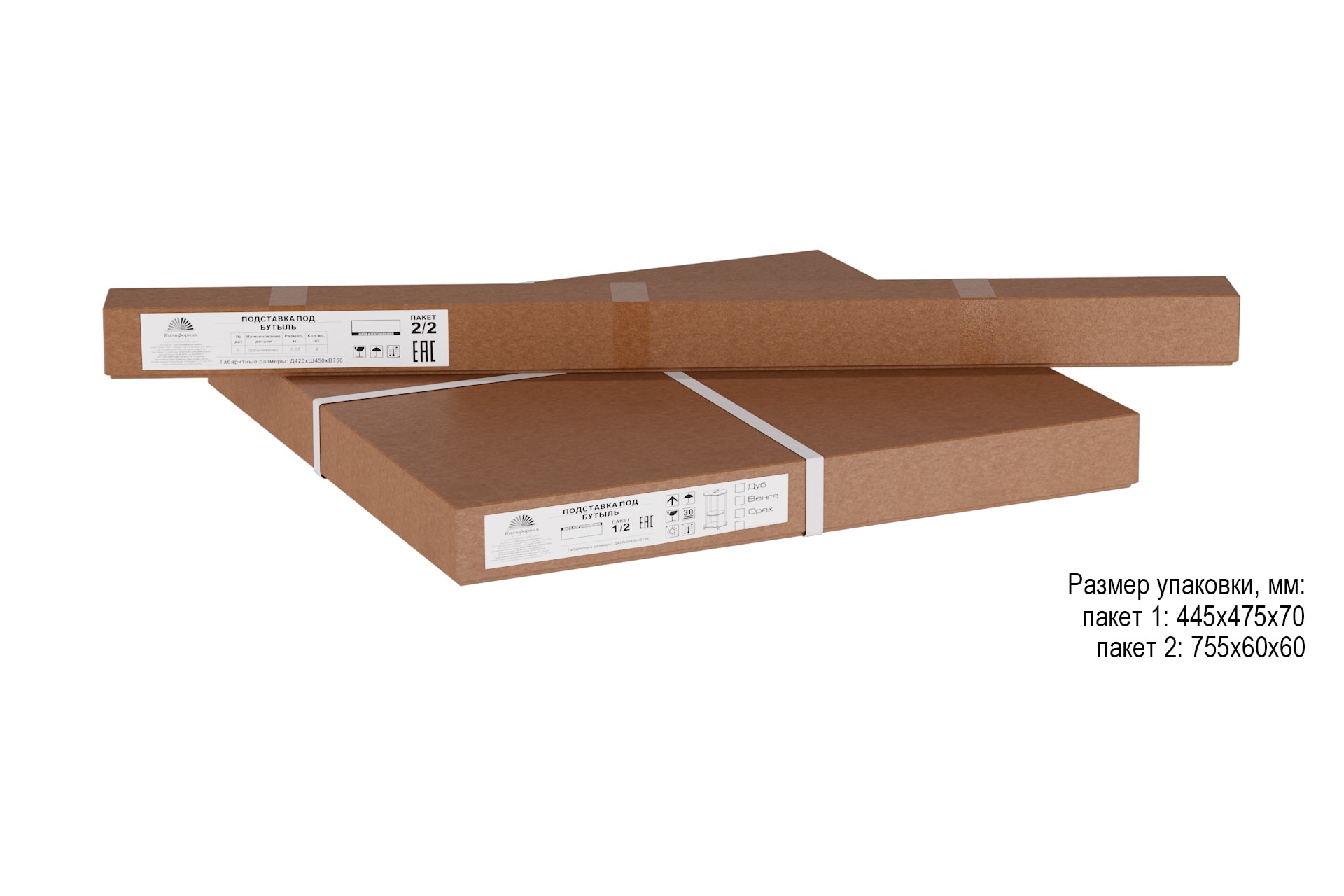 размеры в собранном виде: 420 х 450 х 750 мм Размер упаковки: 1м. - 455*435*60; 2м.-60*60*770 вес: 7кг объем (в метрах кубических): 0,013 Подставки для воды - отличное решение проблемы размещения бутылей 19л. дома или в офисе. Выполненная из материала МДФ 16 мм, подставка имеет опоры из хромированной трубы. Также она мобильна благодаря основанию на колесной опоре, которое дополнительно можно использовать в качестве полки. Продукция поставляется в разобранном виде, упакованная в гофрокартон. В комплект входит вся необходимая фурнитура и удобная инструкция для сборки.Расстояние между нижней и средней полкой 234 мм. Максимальная нагрузка 30кг.