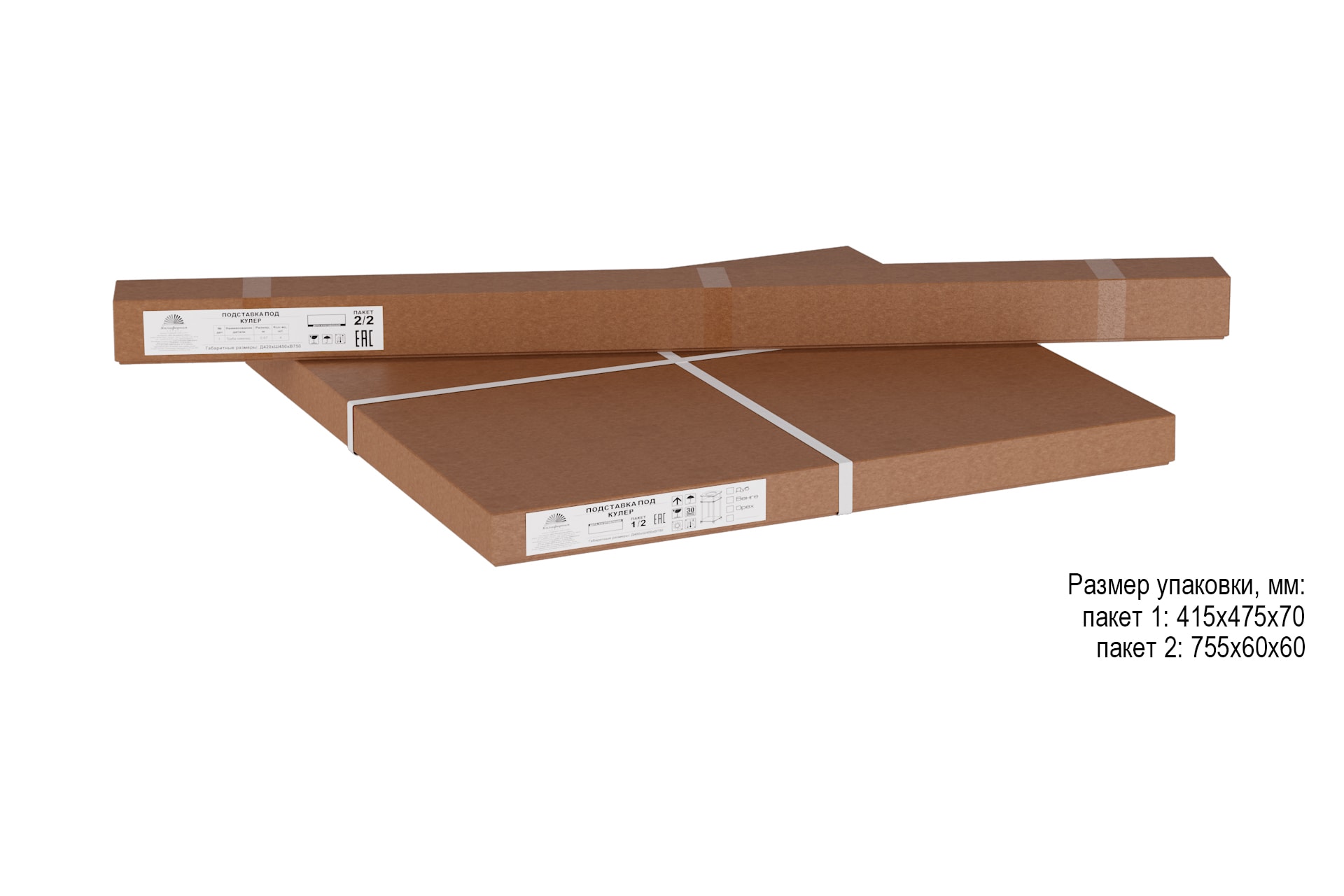 Размер упаковки: 1м. - 60*60*770, 2 м.-415*475*70мм вес: 8кг, объем (в метрах кубических): 0,013 Подставки для воды - отличное решение проблемы размещения кулеров, бутылей дома или в офисе. Подставка под кулер выполнена из материала МДФ 16 мм, опоры-хромированная труба, она мобильна благодаря основанию на колесной опоре и дополнена регулируемой по высоте полкой. Для экономии места дома или офиса данная модель рассчитана на кулер с бутылью и еще на одну запасную бутыль. Подставка поставляется в разобранном виде, упакованная в гофрокартон, а в комплект входит вся необходимая фурнитура и удобная инструкция для сборки. Расстояние между нижней и средней полкой 520 мм. Максимальная нагрузка 45кг.